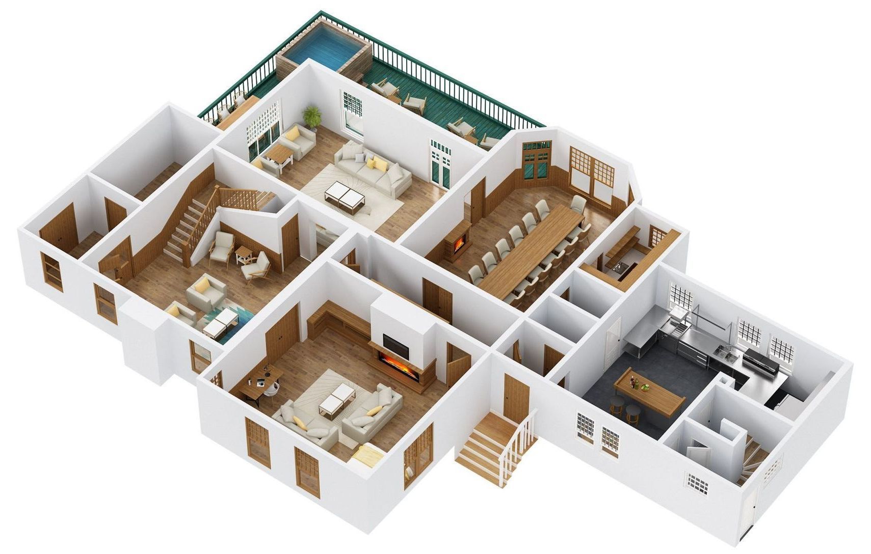 From demonstrating the flooring transitions to the door swings directions, a 3D basic floor plan will effectively exhibit a home or property and help attract potential buyers to make a decision easier.